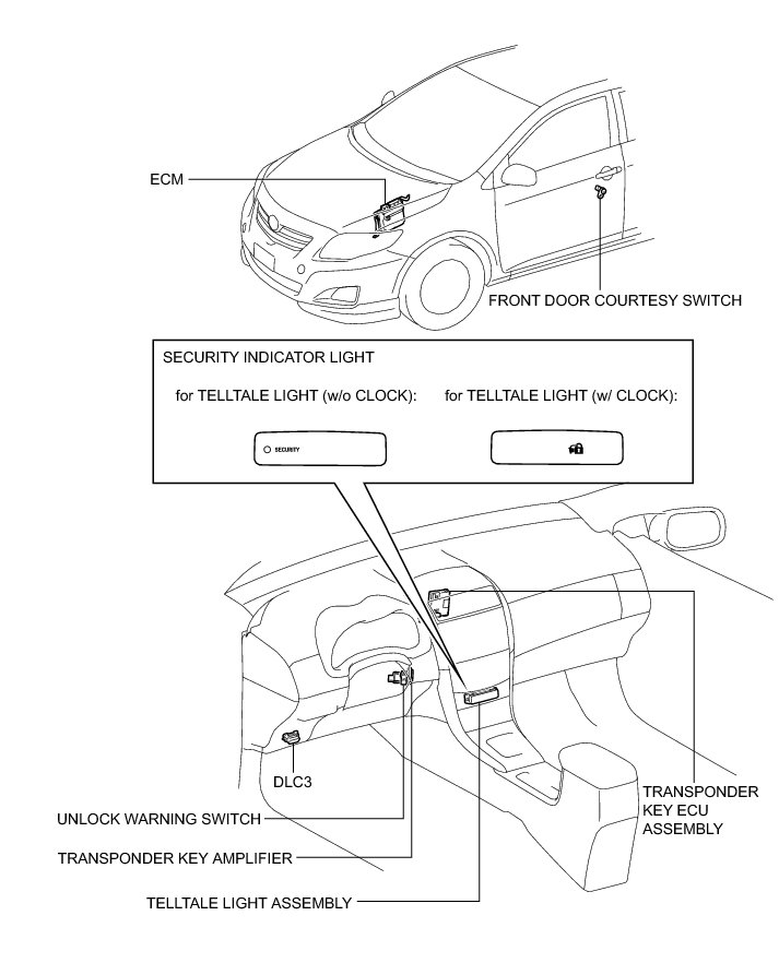THEFT DETERRENT / KEYLESS ENTRY: ENGINE IMMOBILISER SYSTEM (w/o Smart Key System): PARTS LOCATION; 2013 MY Corolla [07/2012 -]