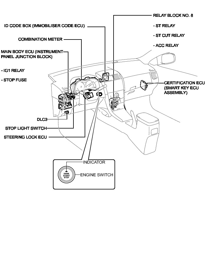 THEFT DETERRENT / KEYLESS ENTRY: SMART KEY SYSTEM (for Start Function): PARTS LOCATION; 2013 MY Corolla [07/2012 -]
