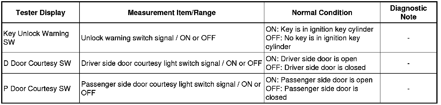 1. READ VALUE USING TECHSTREAM (UNLOCK WARNING SWITCH AND COURTESY SWITCHES)