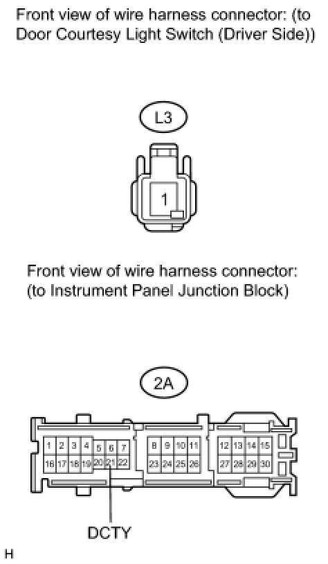 6. CHECK HARNESS AND CONNECTOR (FRONT DOOR COURTESY LIGHT SWITCH - JUNCTION BLOCK)