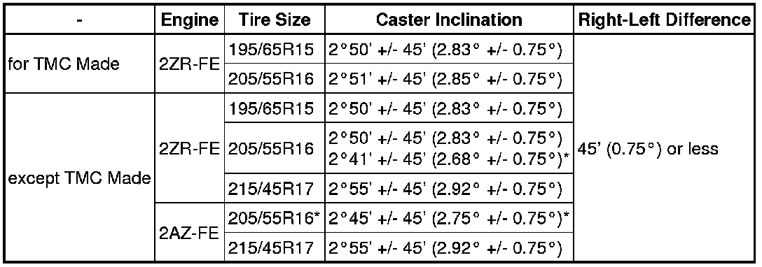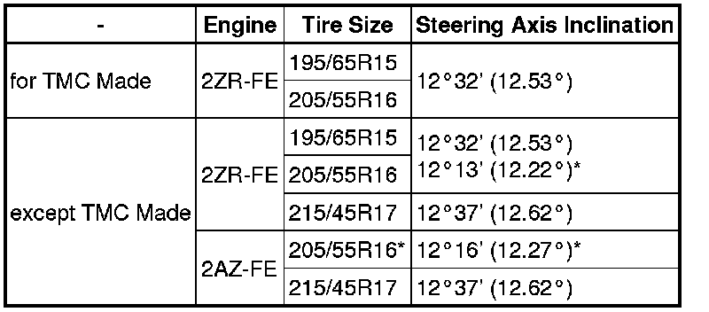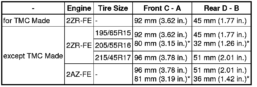 * Before inspecting the wheel alignment, adjust the vehicle height to the specified value.
