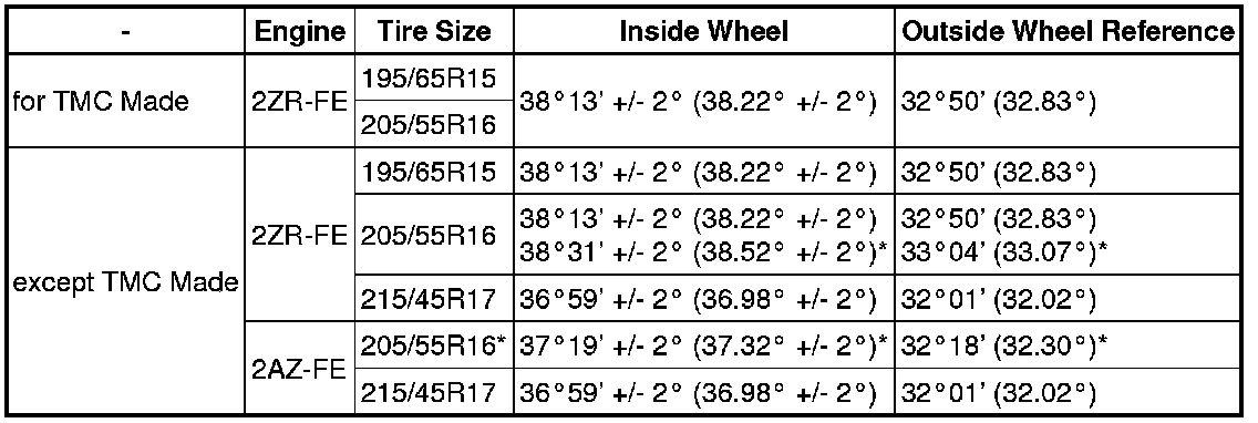 * If the angles are not as specified, check and adjust the right and left rack end lengths.