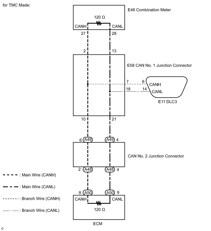 C -- CHECK FOR OPEN IN CAN BUS MAIN WIRE (CAN NO. 2 JUNCTION CONNECTOR - ECM)