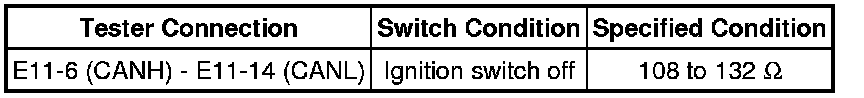 There may be an open circuit in the CAN main wire and/or the DLC3 branch wire when the resistance between terminals 6 (CANH) and 14 (CANL) of the DLC3 is 70 Ohms or higher.