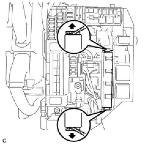 (a) Using a screwdriver with its tip wrapped in protective tape, disengage the 2 claws and disconnect the integration relay.