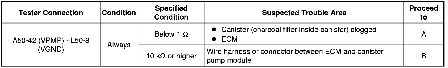 B -- CHECK HARNESS AND CONNECTOR (ECM - CANISTER PUMP MODULE)