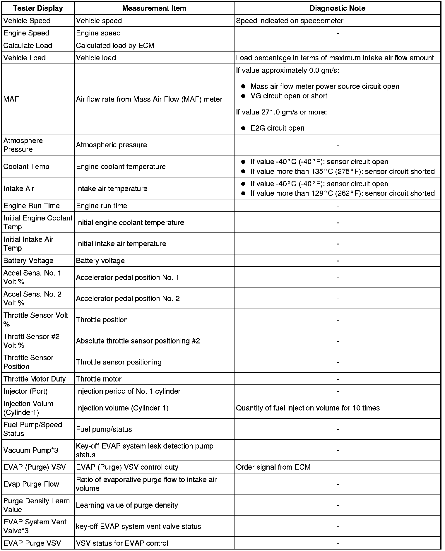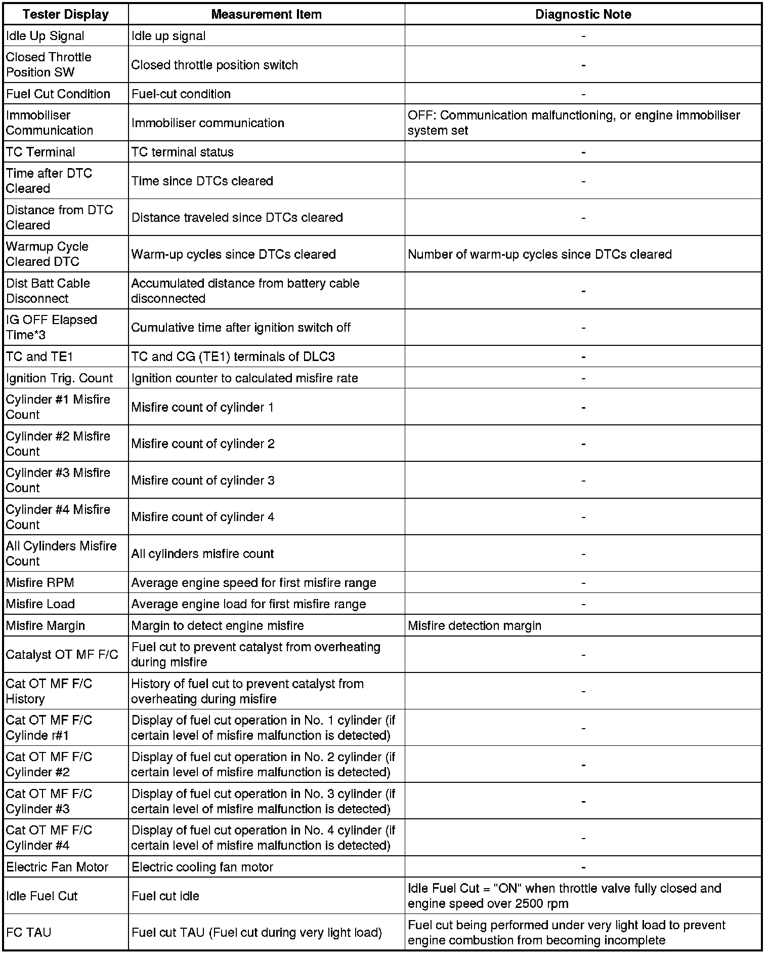 * The ECM records engine conditions in the form of freeze frame data every 0.5 seconds. Using the Techstream, 5 separate sets of freeze frame data can be checked.