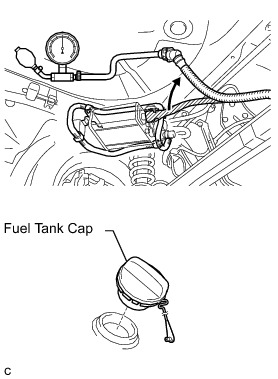 (c) Apply pressure to the fuel tank to create an internal pressure of 4 kPa (41 gf/cm2, 0.58 psi).