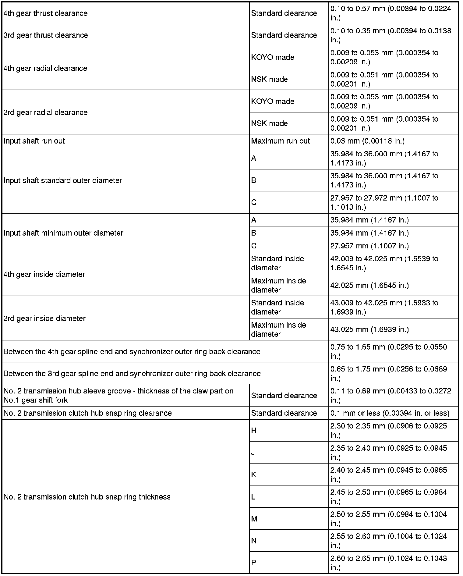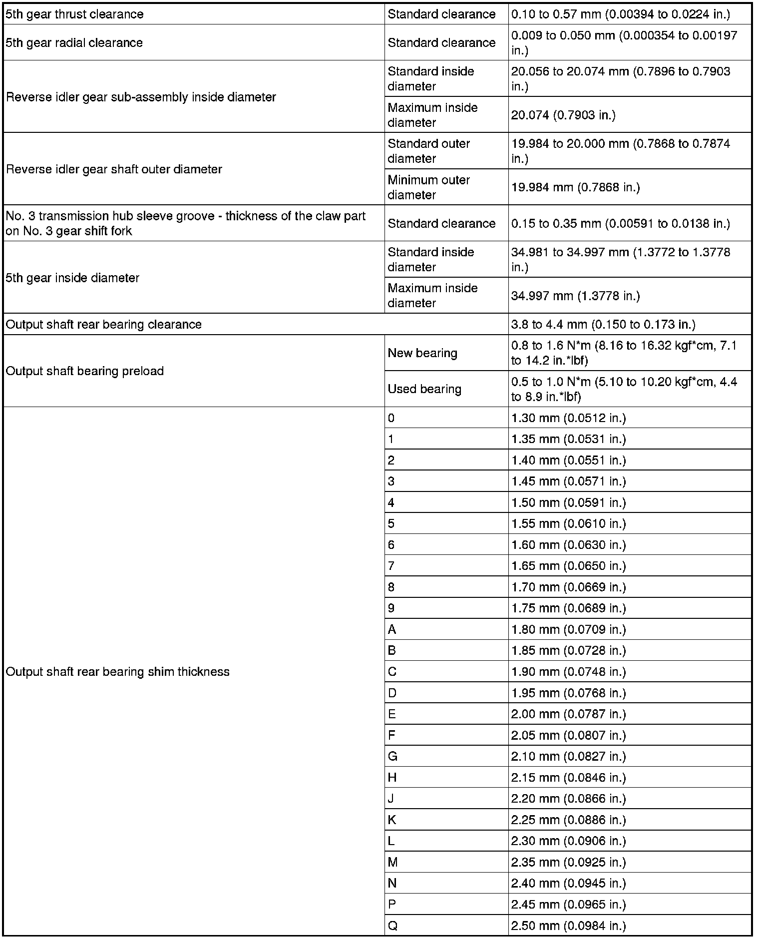SPECIFICATIONS: E351 MANUAL TRANSMISSION / TRANSAXLE: SERVICE DATA; 2013 MY Corolla [07/2012 -]