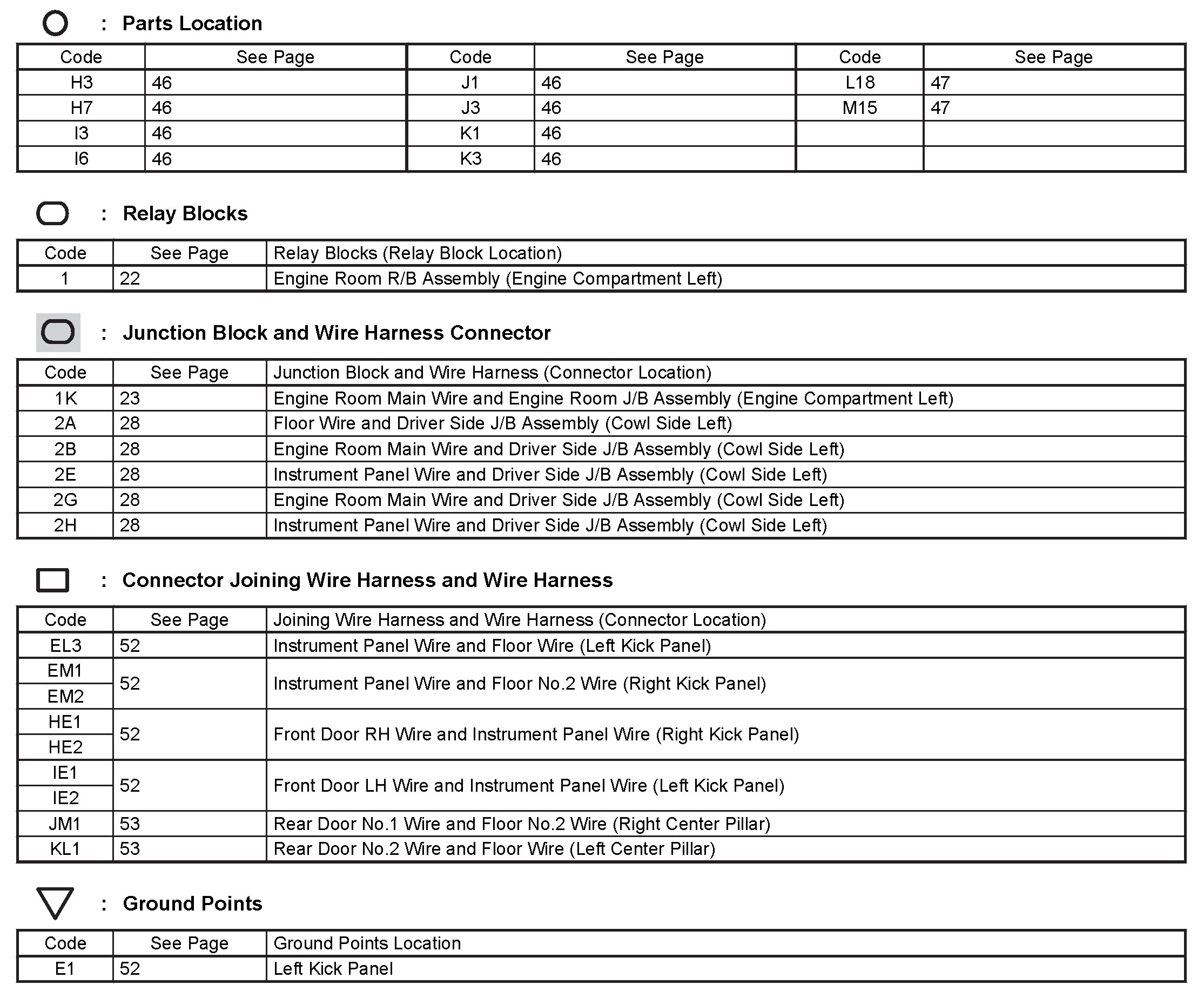 Locations: The locations of components, connectors, ground points, and splices referred to within these diagrams can be found at Vehicle Locations. Locations