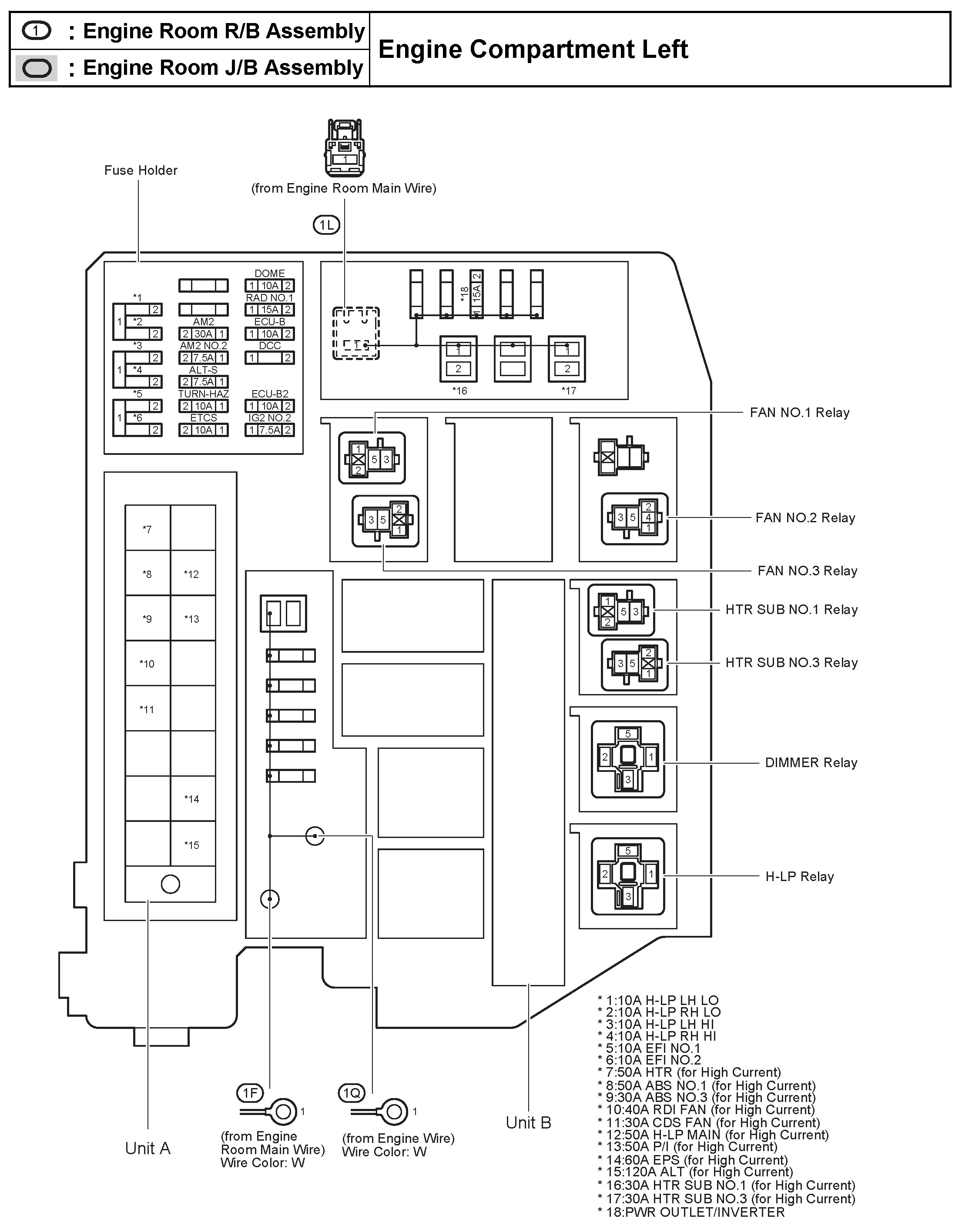 Engine Room R/B Assembly, Engine Room J/B Assembly - Engine Compartment Left: