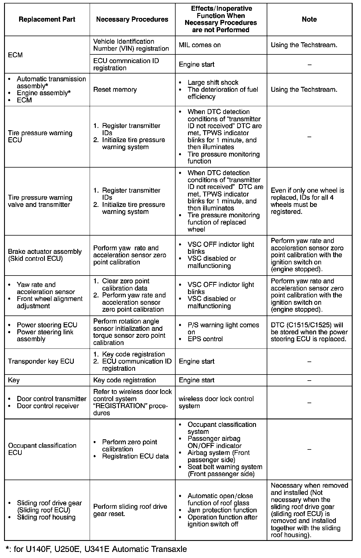 PROCEDURES NECESSARY WHEN ECU OR OTHER PARTS ARE REPLACED