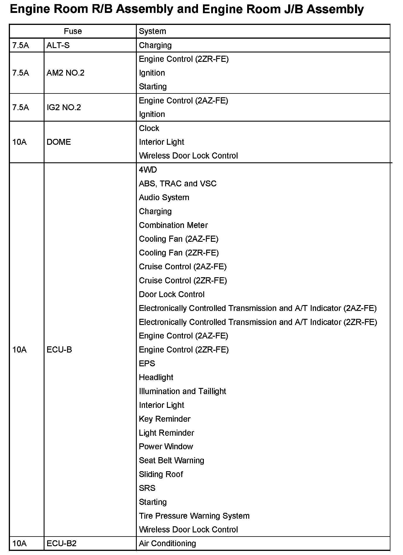 Engine Room R/B Assembly and Engine Room J/B Assembly: