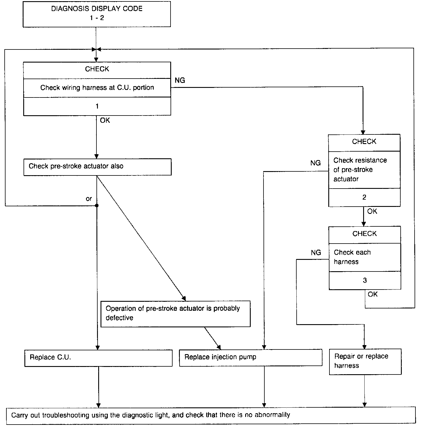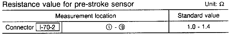 - Resistance value is not as specified -> pre-stroke actuator or harness abnormal -> go to [CHECK/2]