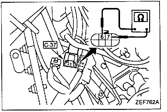 2. Measure the resistance between terminals (7) and (6) of connector [C-37] at the pre-stroke actuator end.