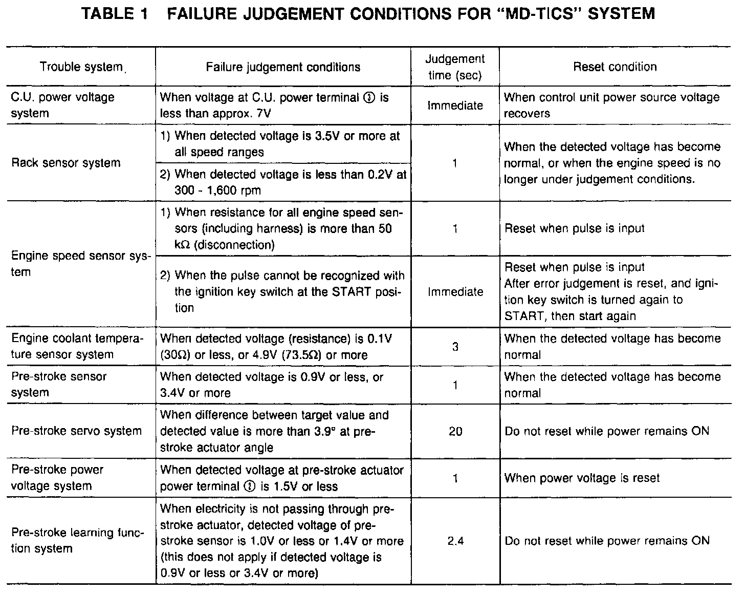 Table 1 Failure Judgement Conditions For "MD-TICS" System