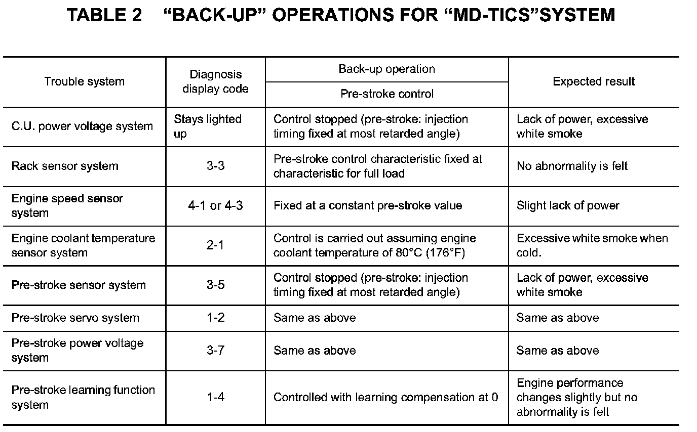 Table 2 "BACK-UP" Operations For "MD-TICS" System
