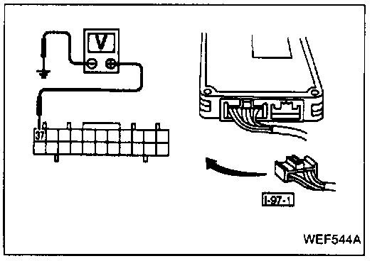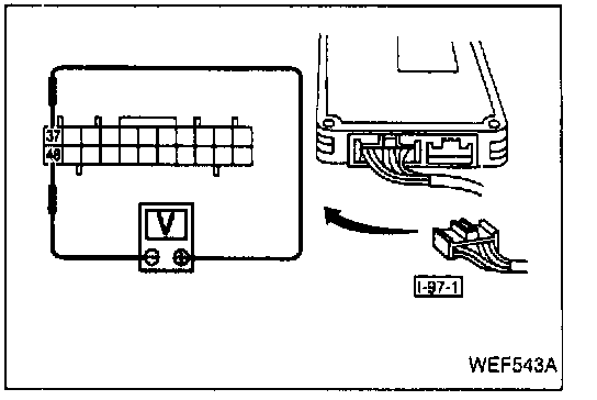 2. Measure voltage between terminal (37) (+ end) of instrument harness connector [I-97-1] and body ground (- end).