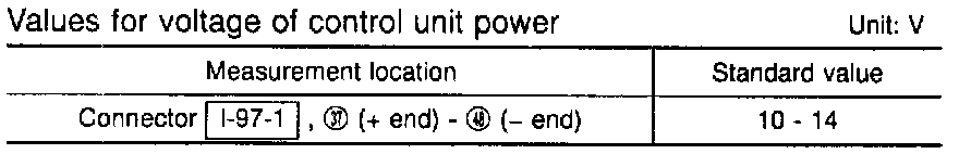 - Voltage is not as specified -> disconnection in harness between battery and fuse, abnormality in battery -> repair harness or inspect battery