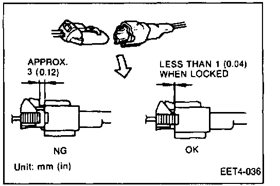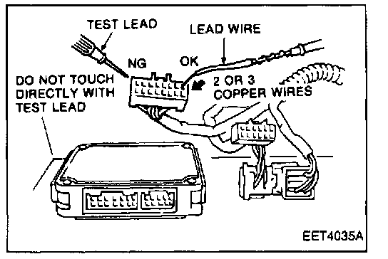 2. Do not insert the test lead of the tester directly into the connector terminal. If it is pushed in by force, the terminal inside the connector will be expanded and this will cause improper contact.