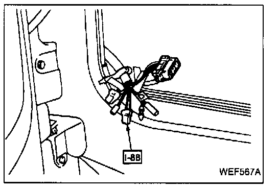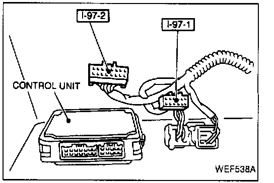 1. Turn the ignition key switch OFF, then remove instrument harness connector [I-97-1].