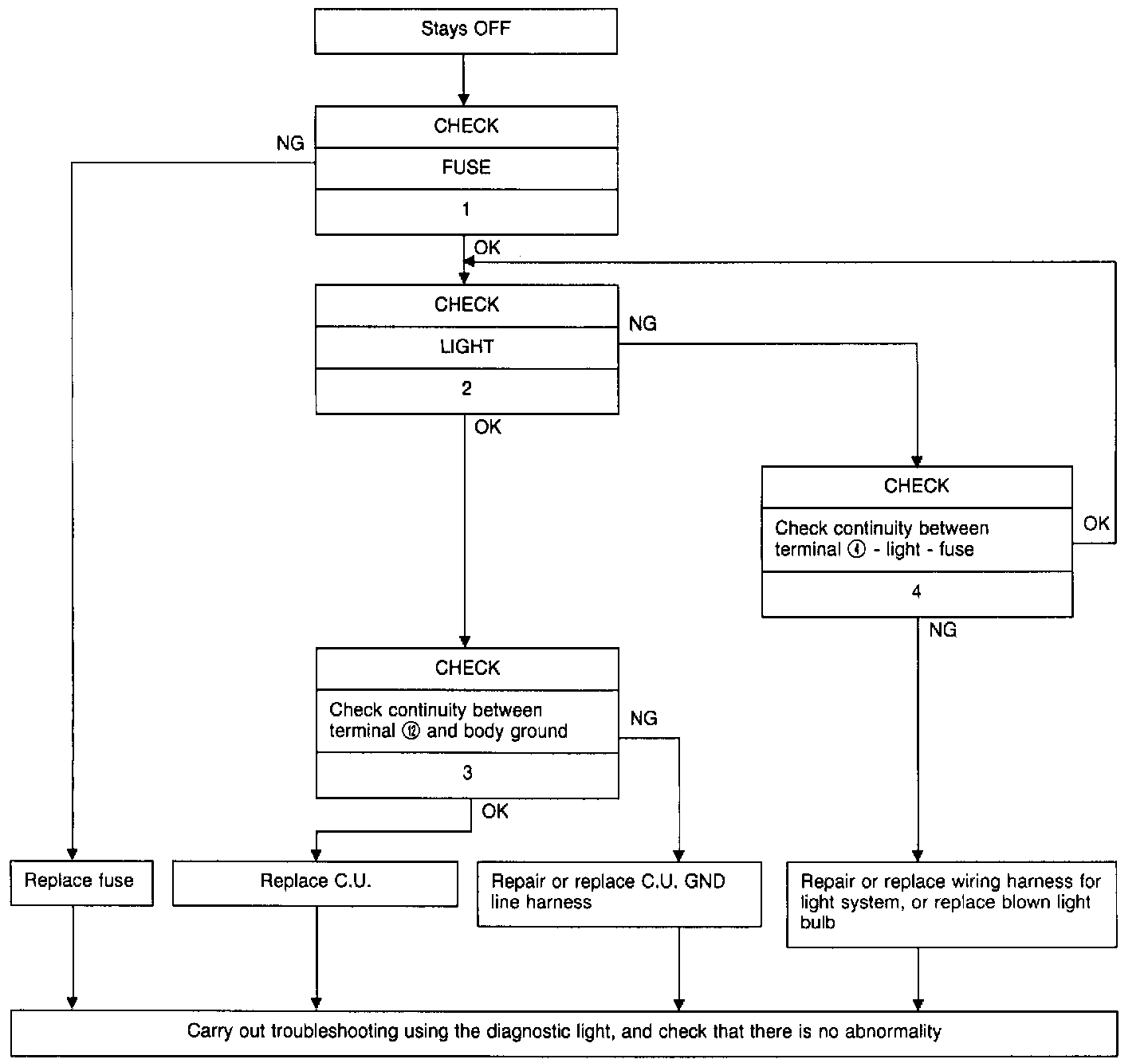 NOTE: After completing each operation, carry out trouble-shooting with the diagnostic light and confirm that there is no abnormality.