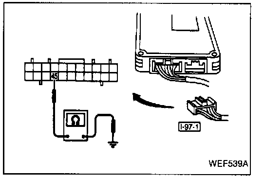 2. Turn the ignition switch ON, then use the lead wire to ground terminal (45) of connector [I-97-1], and check if the light lights up.