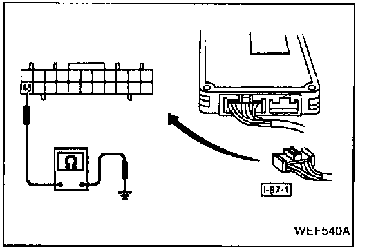 1. Check the continuity between the body and terminal (48) of instrument harness [I-97-1].