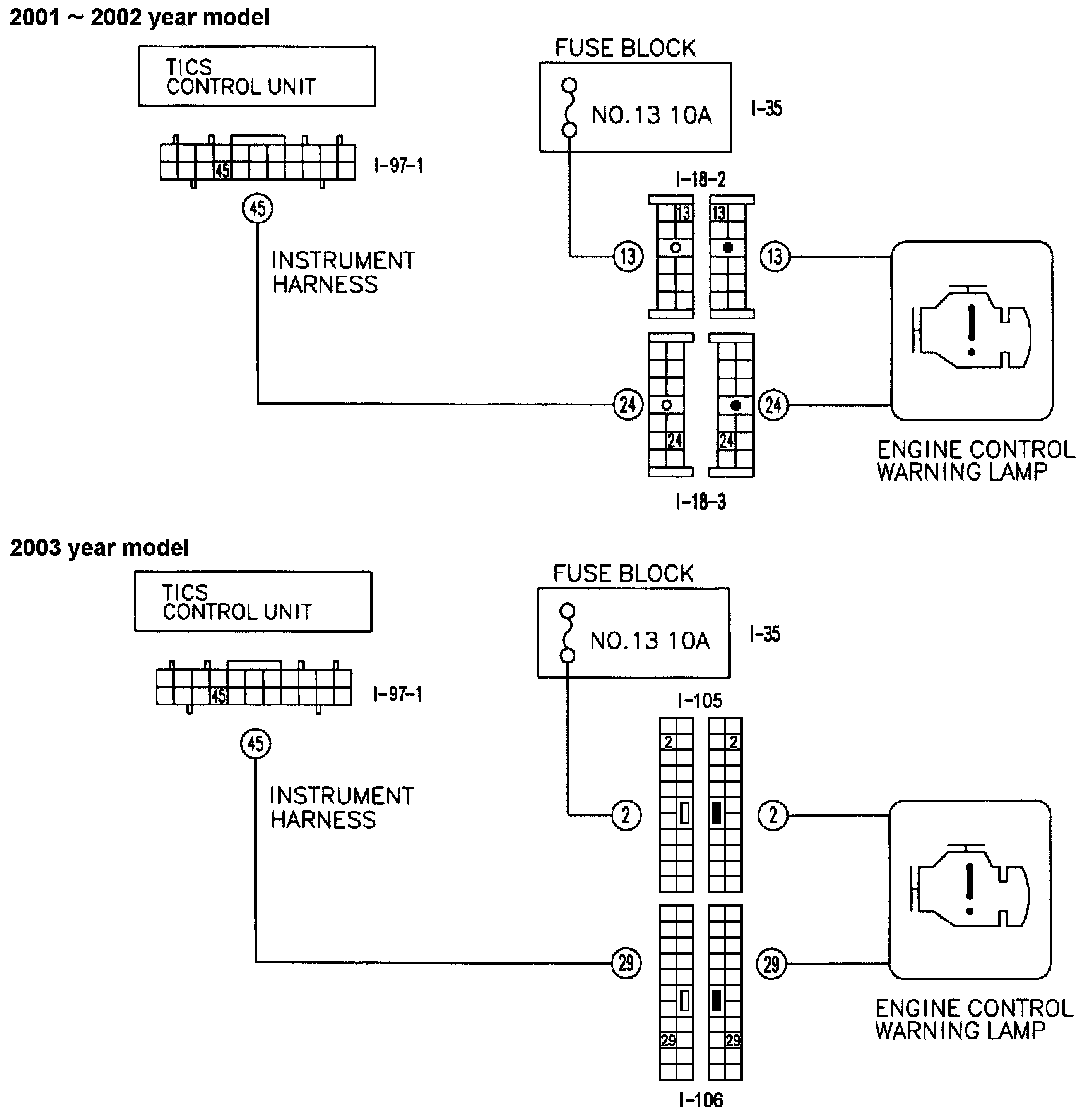 The one for the MD-TICS is distinguished by the wiring at the engine harness end (blue/red, blue/black).