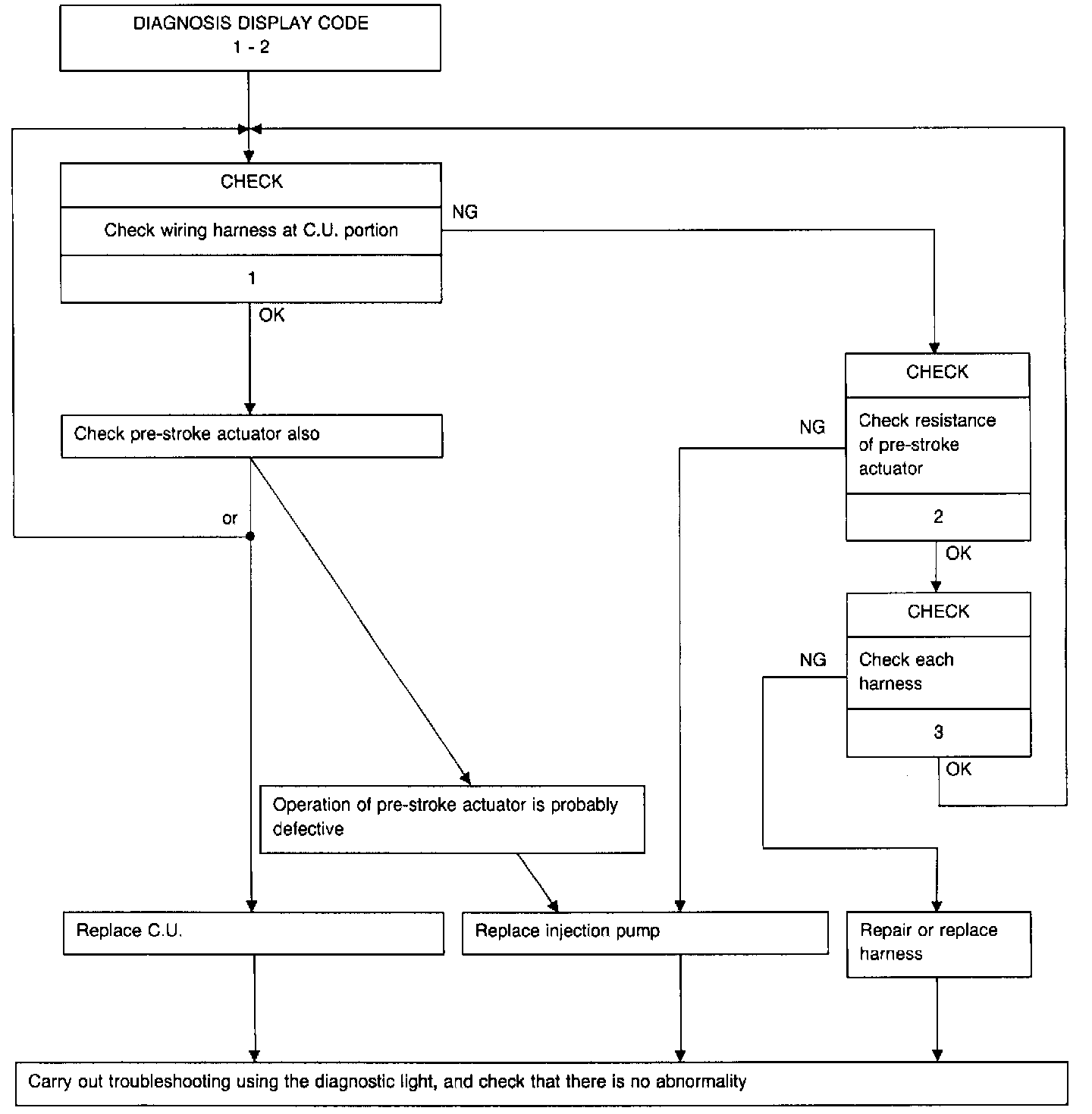 NOTE: After completing each operation, carry out trouble-shooting with the diagnostic light and confirm that there is no abnormality.