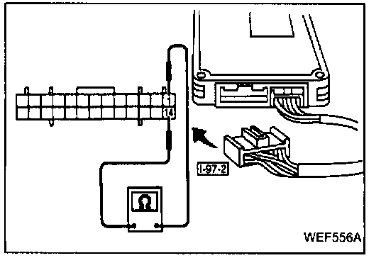 2. Measure the resistance between terminals (1) and (14) of harness connector [I-97-2].