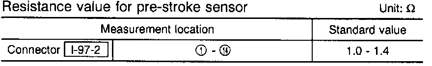 - Resistance value is not as specified -> pre-stroke actuator or harness abnormal -> go to [CHECK/2]
