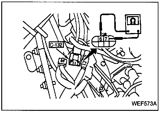 2. Measure the resistance between terminals (7) and (6) of connector [C-132] at the pre-stroke actuator end.