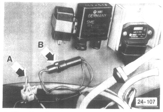 California only: Vehicles for California are equipped with speed limit switch located between full throttle enrichment switch and control unit. Full throttle enrichment will take place when engine runs above 3000 rpm (at same time oxygen sensor switches off)