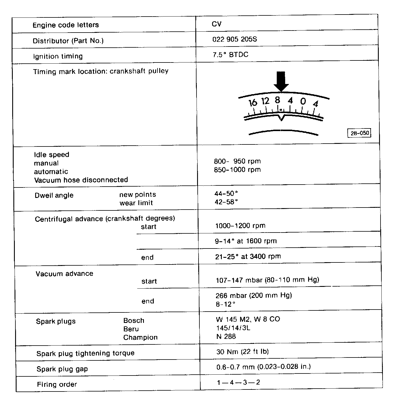 Ignition System Specifications: