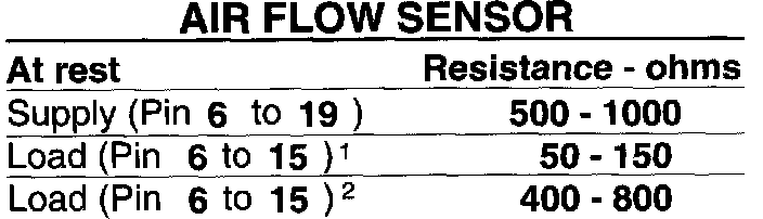 1 Flap on air flow sensor closed or air flow sensor plate at rest position. Resistance increases as flap or plate opens.