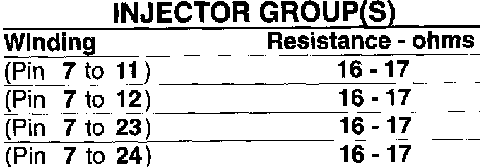 CAUTION: WHEN MEASURING OHMS DISCONNECT THE ECU FROM THE HARNESS PLUG AND NEVER TURN THE IGNITION KEY ON. IT IS P0SSIBLE THAT FAILURE TO FOLLOW THESE STEPS WILL RESULT IN DAMAGE TO THE ECU.