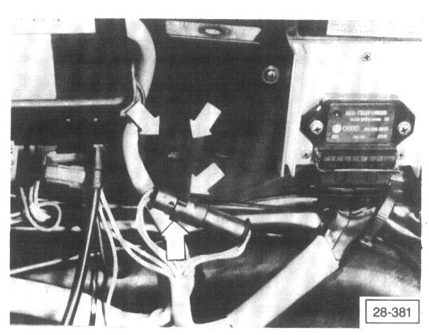 - Disconnect idle stabilizer plugs from control unit (squeeze plugs to release - upper arrows)