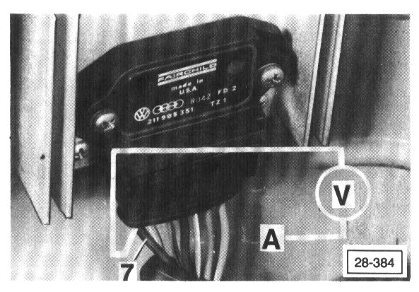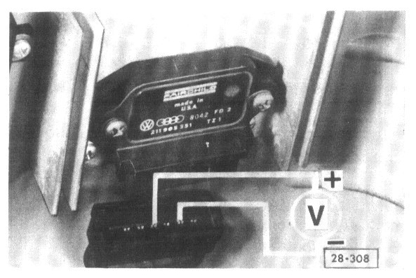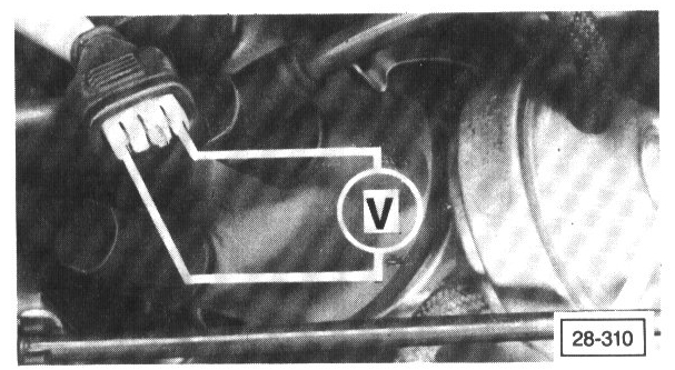 Note: If readings are within specifications, but defect still exists, replace Hall control unit or check for wire breaks between Hall generator connector and Hall control unit; if necessary, repair.