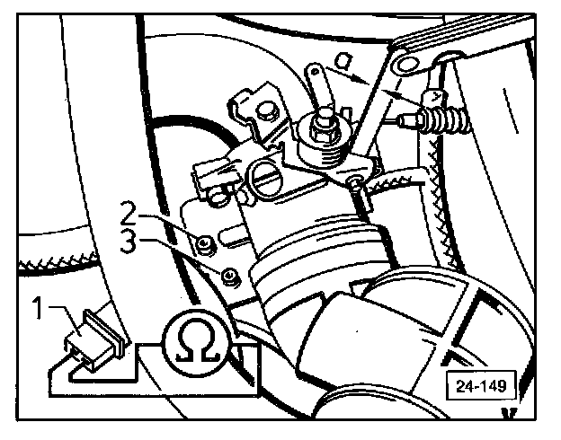 - Measure switch-on point with feeler gauge between idle stop and idle adjusting screw