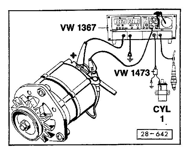 - Connect VW 1367 tester for ignition timing and rpm display function