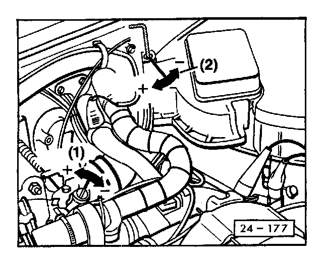 - Using adapter VW 1473, connect tester VW 1367 to terminal 1 of ignition coil