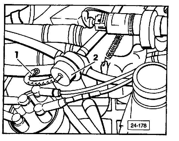 - Check idle speed rpm, correct if necessary using adjusting screw (1)