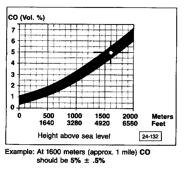 Note: CO content is altitude dependent, refer to the following chart to compensate for the altitude of the workshop.