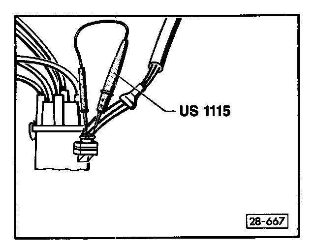 - disconnect Hall sender (distributor) and connect multimeter US 1119 to outer terminals of Hall sender connector