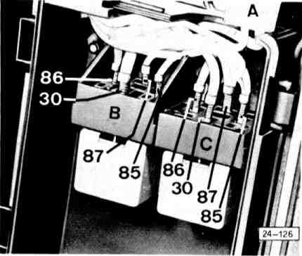 - Connect switched jumper wire tool No. US 4480/3 or equivalent, to terminals 30 and 87.