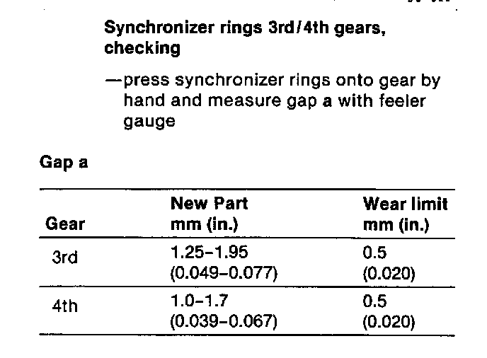 Synchronizer Ring Gap Specifications: