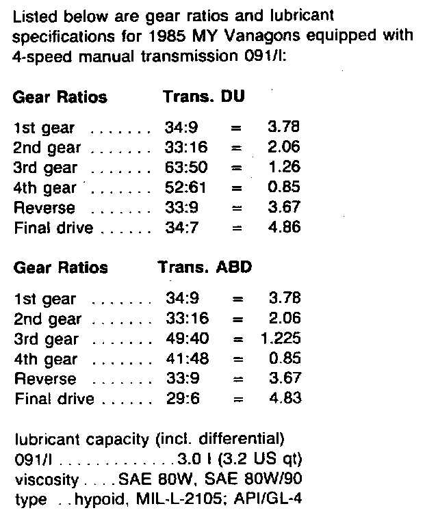 Vanagon Syncro AWD L4-2109cc 2.1L