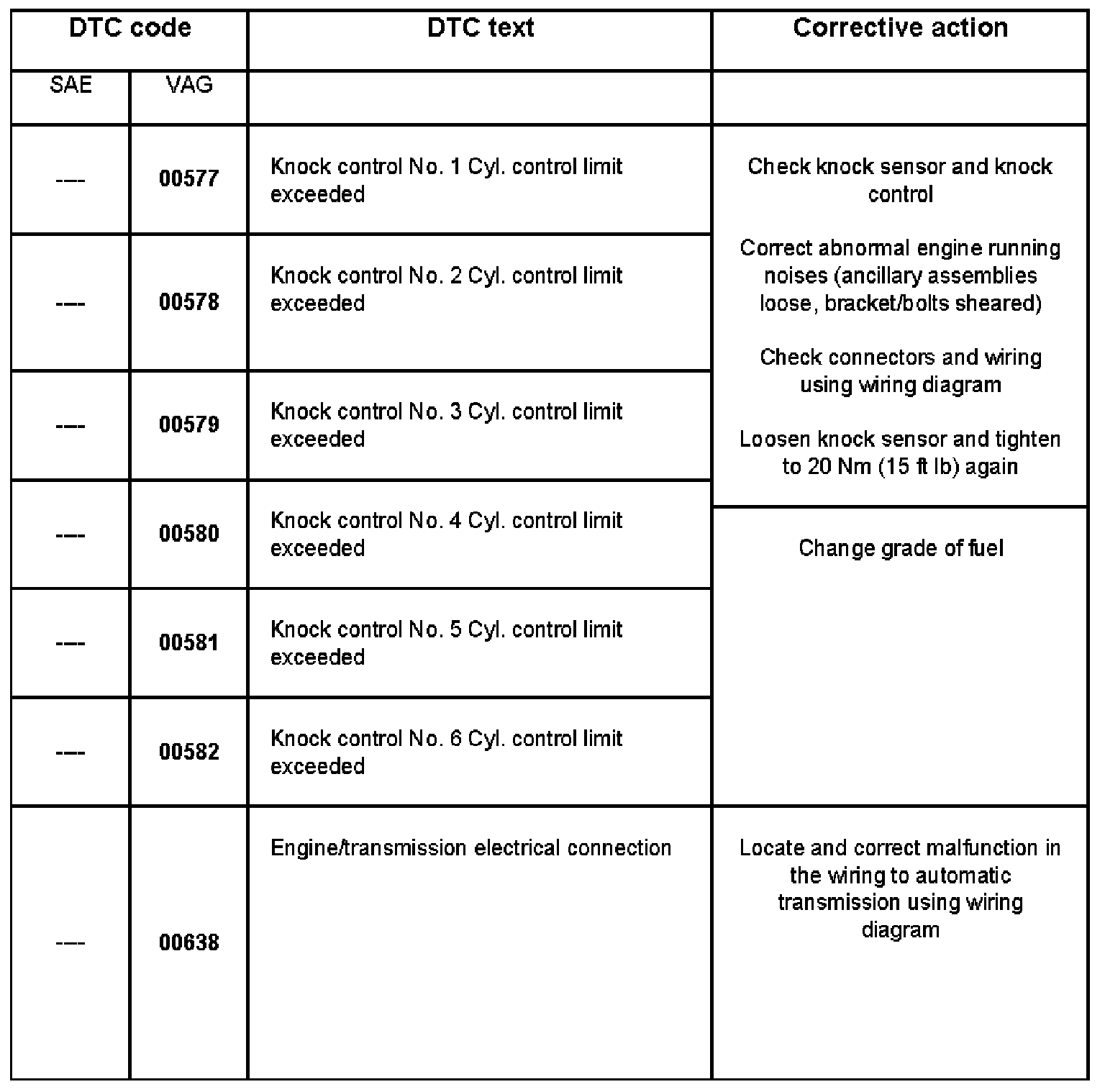 DTC 00577 - 00638: