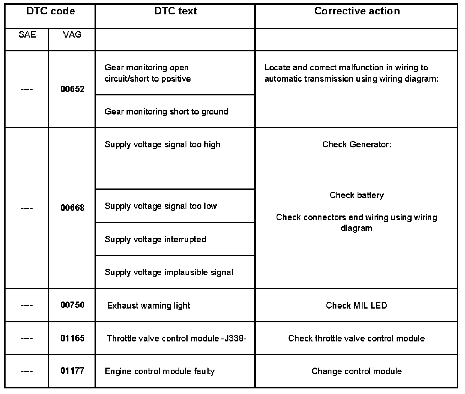 DTC 00652 - 01177: